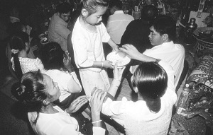 我問過玉金,給玉波籌辦賧奉物品花了多少錢。玉金對我說:“花多少錢?不知道。我們從來不算,想花多少就花多少。算了不好!”不過我還是私下算了算,買的東西雖然多,但都是些價格不高的日用品。而請客卻花了不少錢:與4戶人家合伙買了一頭2400元的水牛,470元買了兩頭豬,請了兩天的客,遠近的親戚朋友都來了。這筆不少于5000元的花費對人均年收入只有2000多元的地區(qū)來說,算得上是一筆大花銷了。