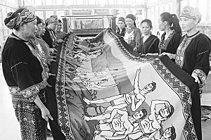 歷時一年時間織造,長186.7米黎族民俗風情長卷織錦壁掛《錦繡黎家》,日前喜獲上海大世界基尼斯世界紀錄證書,成為世界織錦項目之最。這幅黎錦長卷由海南省民族研究所織錦工藝研究人員設(shè)計,五指山鑫達民族織錦旅游開發(fā)中心于2012年4月初,在三亞檳榔河國際鄉(xiāng)村文化旅游區(qū)開始織造工作。
