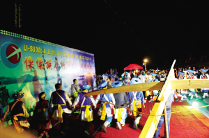 一場盛大的傈僳族節(jié)日聚會,背后的弩弓形象顯而易見。