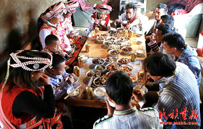 “過去我們一家吃除夕團(tuán)圓飯,有點(diǎn)肉就不錯了,哪會有如此豐盛的宴席。你看如今這滿桌子十幾道菜,吃不完、喝不完,全靠黨和國家的政策好啊。”在談到春節(jié)的變化時,云南省維西傈僳族自治縣保和鎮(zhèn)臘八底村的蜂大興深有體會。