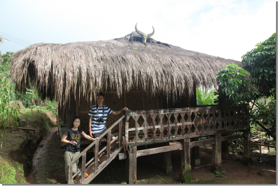 普通房子:房子內部隔做兩間(主間與客間)。在客間的西端開—“鬼門”,連接鬼門的外邊一般都架置一個掌子(用竹子和木料搭成的七、八平米的涼臺),有的在房子左邊靠客門外架一個掌子,用途是曬晾糧食、衣物,或堆放雜物等,白天婦女還可以在上面做針線活。房子的前廈是放置牛頭或推集糧食的地方,后廈下面喂豬、雞和放杵碓。房子右邊開有一道“火門”,在“火門”右前方栽有牛角叉,左邊栽有牛尾巴樁。