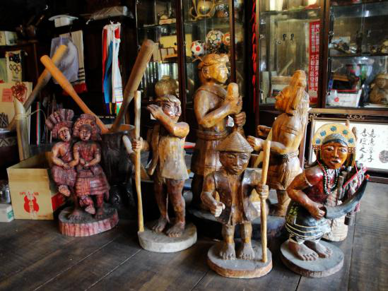 雕刻。高山族的雕刻以木雕和石雕為主,金屬雕刻是現(xiàn)代才出現(xiàn)的。排灣和魯凱兩個族群的雕刻工藝最為發(fā)達,也最具特色。木板雕刻的紋樣與石壁雕刻大致相似,只是木板雕刻多施色彩,少則紅、白兩種色,多則加上黃、橙、藍、綠色不等,鮮艷亮麗,引人注目。一般住屋內(nèi)外都有雕刻,貴族的住屋裝飾尤其突出。立柱和壁板雕刻的主題多為敘述家族神話、傳說起源或表彰家族的特殊事跡。雕刻的題材以神話傳說、狩獵生活、祖靈像為主;木雕以人像、人頭、蛇紋、野豬和鹿紋為主;其他還有重圓紋、太陽紋、網(wǎng)形、風(fēng)車形,四葉形、人體生殖器等等。這些題材與排灣人的原始宗教、神話內(nèi)容有密切的關(guān)聯(lián)。住屋的木雕取材于質(zhì)地堅硬的樟木、臺灣櫸、二葉松等喬木,而木桶、木臼、木椅等器物,除了堅硬木材外,也選擇樟木,烏心石等。至于木匙、煙斗、木梳則喜歡用月橘之類的材質(zhì)。