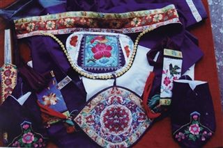 “鳳凰點(diǎn)頭裙子飄,三寸金蓮顯婀娜”。這是民和土族服飾的真實(shí)寫(xiě)照。土族婦女的服飾,不但燦爛華麗,其刺繡技藝之高,做工精致考究令人嘆為觀止。