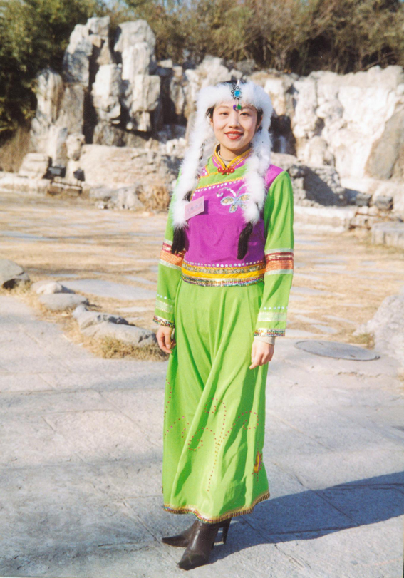 女服外套以短矮圓領(lǐng)右衽式長袍為主,禮儀場合在長袍上著綢緞坎肩。新疆塔城地區(qū)的達(dá)斡爾族婦女因受當(dāng)?shù)貗D女服飾習(xí)慣的影響,喜愛穿用淡紅和綠色的服飾。海拉爾地區(qū)的達(dá)斡爾族婦女所穿的夏季袍為立領(lǐng),袍身上窄下寬,長至腳面,下擺無衩,右衽布排扣至膝以下,類似蒙古袍。