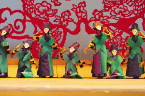 達(dá)斡爾族有語言沒有文字,然而在《神奇的達(dá)斡爾》演出現(xiàn)場(chǎng),觀眾卻能夠感受到演員通過聲音和肢體語言記錄下來的活的文字,并且重新思考非物質(zhì)文化遺產(chǎn)的意義所在。近兩個(gè)小時(shí)的演出,觀眾對(duì)達(dá)斡爾族的非物質(zhì)文化遺產(chǎn)有了直觀的感受:達(dá)斡爾族搖籃,它的制式體現(xiàn)了達(dá)斡爾人對(duì)生命的思考和對(duì)自然的尊重;哈尼卡,達(dá)斡爾族傳統(tǒng)的剪紙藝術(shù),伴隨著金色的童年,充實(shí)著達(dá)斡爾人色彩斑斕的心靈世界;達(dá)斡爾族頸力賽,勞動(dòng)之余一項(xiàng)普及性民間傳統(tǒng)體育競技運(yùn)動(dòng),給人們平常的生活帶來無窮的樂趣——它們,都于2007年被列入第一批內(nèi)蒙古自治區(qū)非物質(zhì)文化遺產(chǎn)保護(hù)名錄。不僅如此,曲棍球(達(dá)斡爾語為“波依闊”,達(dá)斡爾族人喜愛的民間傳統(tǒng)體育項(xiàng)目)、魯日格勒(達(dá)斡爾族民間舞蹈,多表現(xiàn)狩獵生活和勞動(dòng)場(chǎng)面)、烏春(達(dá)斡爾族特有的說唱藝術(shù))還被列入第一批國家級(jí)非物質(zhì)文化遺產(chǎn)保護(hù)名錄。