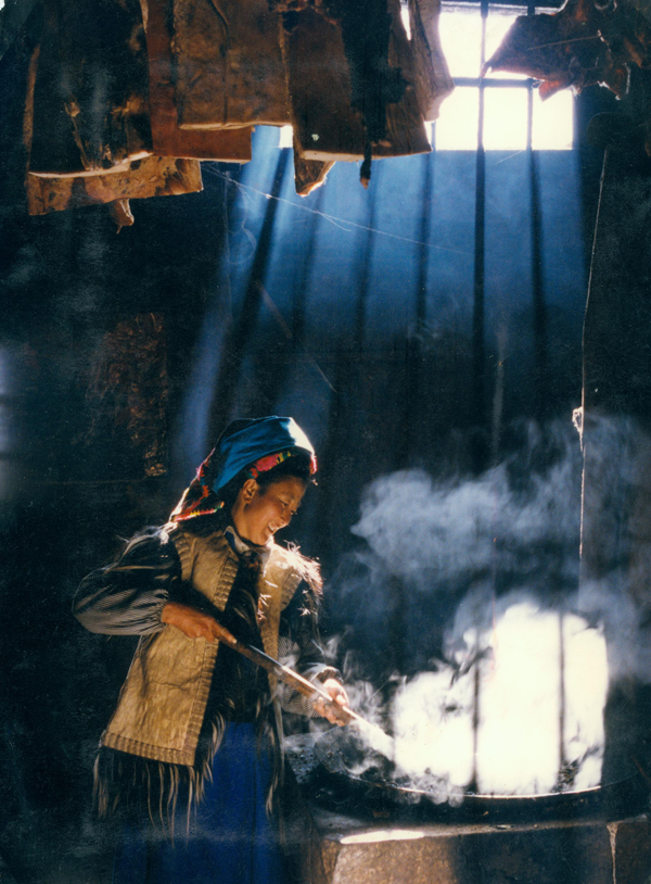 正在烹飪的羌族婦女(劉軍攝)