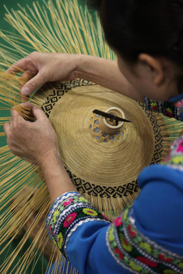 作為毛南族文化特征的代表,花竹帽是男女青年的定情物,象征著吉祥幸福;可遮陽避雨;它還是珍貴禮品,可饋贈嘉賓好友。這一民間工藝經(jīng)過毛南人一代一代地不斷改進,發(fā)展成了精美的民族工藝品,不僅為毛南族的青年、婦女所喜愛,還遠銷外地,并在全國少數(shù)民族工藝品展覽展銷中獲得好評。