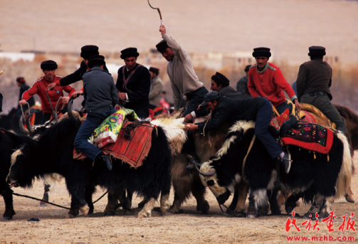 塔吉克族獨有的騎牦牛叼羊 袁東平 攝影 引自民族畫報