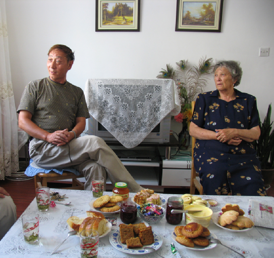 到俄羅斯族人家中作客或辦事,進屋要敲門,得到允許才能入內(nèi),進屋要脫帽,坐在主人讓給的位子上,不能坐床,坐床認為是很不禮貌的行為。來客不得隨便吸煙,吸煙須經(jīng)主人同意。俄羅斯人最隆重的傳統(tǒng)禮節(jié)是用面包和鹽迎接客人,象征著友誼和善意。來客須用刀子切下一塊面包沾少許鹽吃下后方可進屋。這種禮節(jié)從前只用于迎接貴賓和新娘,現(xiàn)在也用于一般社交場合。