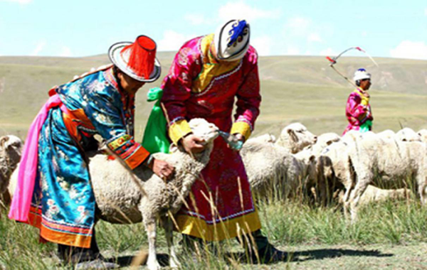 裕固族從事畜牧業(yè)生產已有悠久的歷史。牧民畜養(yǎng)牲畜的種類以羊(綿羊、山羊)、牛(分牦牛、犏牛、黃牛)、馬為主,還有少量的驢、騾,明花鄉(xiāng)尚有大量的駱駝。在人們的經濟生活中,絕大部分生產和生活資料都依賴于牲畜和畜產品的供給。裕固人居住用的帳篷、毛氈、穿的衣服、靴襪,日常飲食的肉、奶都來自畜產品。生產和生活上所用的大部分工具,如毛繩、褡褳、提水工具(皮口袋)、盛物口袋等,也全部是用畜產品制成的。此外,牲畜還是乘騎和馱運的重要工具。