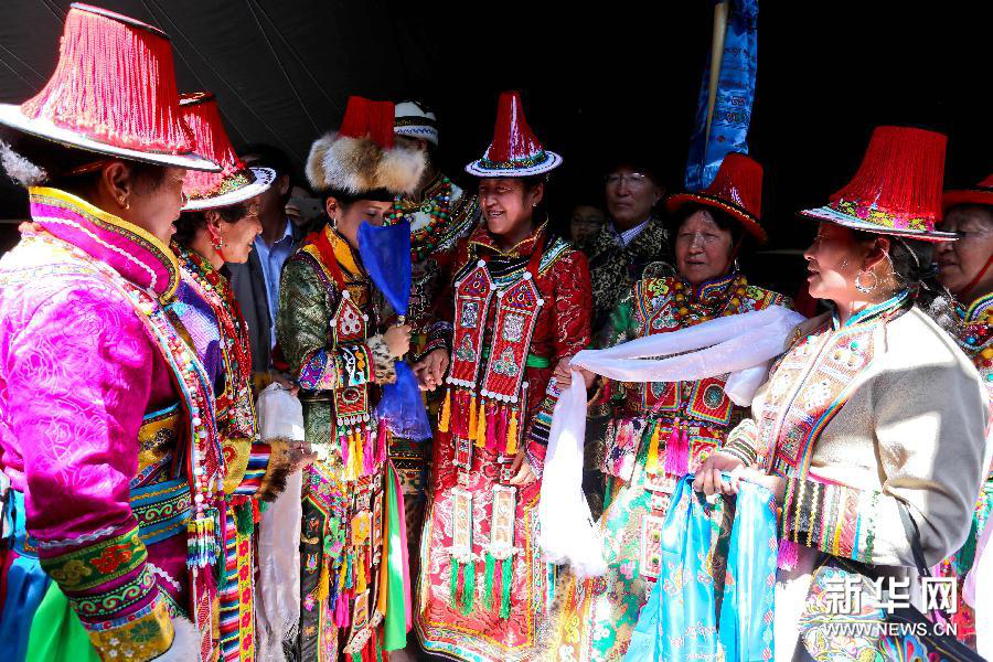 從那以后,裕固族姑娘出嫁就借用這頂“吐魯格排爾克”成親配對,不管春夏秋冬結婚,新娘提前三天就要戴在頭上。一直到現(xiàn)在,還保留著這個習俗。