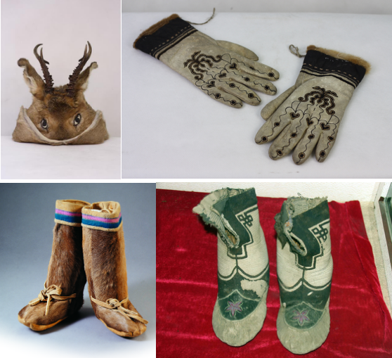 狍頭帽、狍皮狩獵手套、犴腿皮靴和奧勞其,吳雅芝供圖