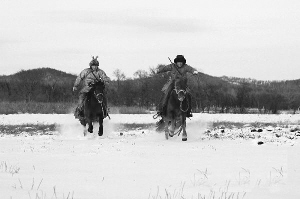 進山狩獵的準備活動從凌晨就開始進行了,繩、皮套和馬腿上的裹布都要弄好,政府下發(fā)的獵槍也要擦得錚亮,黎明前,還要給馬喂一桶溫熱的豆餅水。東方現(xiàn)出魚肚白不久,一抹紅霞染紅了白樺林,獵人騎著馬,馱著睡袋出發(fā)了。作為獵手,張林江出了村依然先往東走,那里是祖先指引的方向,還有山神白洽娜在等待。風,刮起樹上和地上的白雪,興安嶺一片蒼茫。