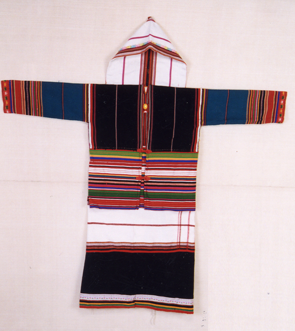 基諾族豎線花紋的衣料是獨具民族特色的基諾族織錦“砍刀布”。