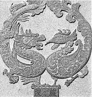 龍鳳從原始社會時期就作為大自然神秘力量的象征受到崇拜。到了封建社會,龍鳳是皇權(quán)的標志,龍是皇帝的化身,鳳則為皇后的化身?;实鄣娜菝?、身體、服裝、座位、床鋪等等都冠“龍”字,如真龍?zhí)熳?、龍體、龍床。而與皇后有關(guān)的事物,則往往冠以鳳字,如鳳冠、鳳輦、鳳樓等等。漢民族對龍鳳的崇拜,滲透到生活的各個領(lǐng)域,形成一系列特殊的傳統(tǒng)習俗。人們相信龍能夠變化飛騰,行云布雨,大旱之年常舉行求龍降雨的儀式。元宵節(jié)耍龍燈,端午節(jié)龍舟競渡等民間習俗的形成也都與龍的崇拜有關(guān)。由于龍的形象威武嚴肅,象征個性的堅毅剛強,所以漢族民間喜以“龍”作為男性的命名;而鳳的形象艷麗優(yōu)美,象征女性的美貌溫柔,民間又有喜以“鳳”作為女性命名。由于人們對龍鳳的崇拜,千百年來,龍鳳形象的紋飾遍見于繪畫、工藝美術(shù)、雕刻、建筑裝飾以及民間文藝創(chuàng)作之中,成了漢族傳統(tǒng)文化的象征。龍鳳呈祥圖案是受人喜愛的一種吉祥圖案。在畫面上,龍鳳各居一半。龍是升龍,張口旋身,回首望鳳;鳳是翔鳳,展翅翹尾,舉目眺龍。周圍瑞云朵朵,一派祥和之氣。龍鳳呈祥圖案象征高貴、華麗、祥瑞、杰出。