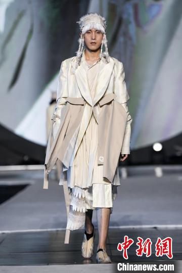 鄒瀚霆說,他查閱了很多文字和視頻材料,在老師的指導(dǎo)下歷時數(shù)月完成作品。“魚皮有特殊的色彩,所以我在設(shè)計時想用好這份底色?!弊鳛椤?0后”,他使用的裝飾及裁剪風(fēng)格,讓作品具備了潮流感。