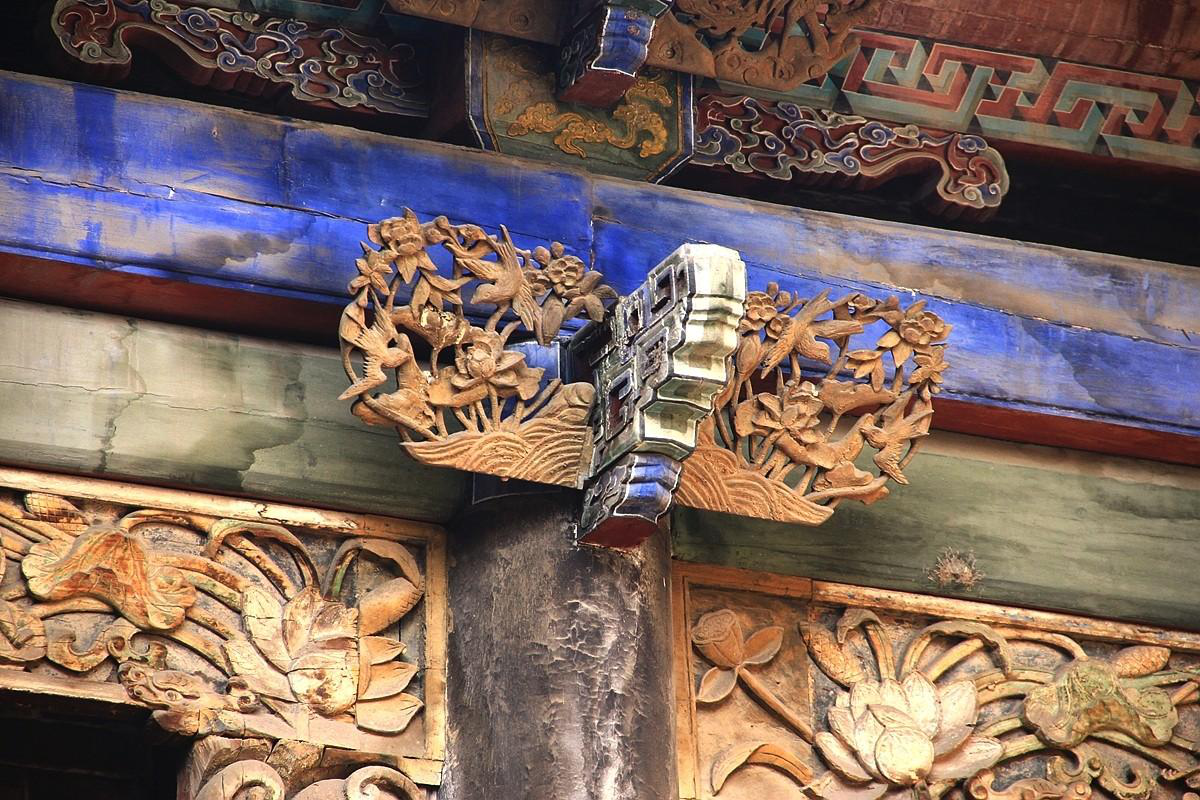 王家大院的磚雕、木雕、石雕,采用圓雕、浮雕、鏤雕等多種手法,運用各種象征、隱喻、諧音,甚至禁忌的藝術(shù)形式,雕刻題材豐富、技法嫻熟,體現(xiàn)了清代建筑裝飾的風(fēng)格,將儒、道、佛思想與傳統(tǒng)民俗文化凝為一體。