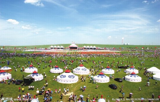 “那達(dá)慕”蒙古語(yǔ)為“娛樂(lè)”或“游戲”音譯。為蒙古族的傳統(tǒng)節(jié)日,據(jù)傳始于漢代。一年一度由一旗或數(shù)旗聯(lián)合在農(nóng)歷七八月舉行,每次一至數(shù)日,規(guī)模大小不一。是時(shí)正是草原上氣候怡人、綠草如茵、百花盛開(kāi)、牛羊肥壯的黃金季節(jié)。節(jié)日期間,牧民們身穿節(jié)日新衣,乘馬驅(qū)車(chē),從四面八方匯聚一處。一時(shí)草原上五彩旗幟如霞云飄掠,蒙古包如點(diǎn)點(diǎn)珍珠,一片節(jié)日氣象。大會(huì)上不僅有傳統(tǒng)的賽馬、摔跤、射箭等競(jìng)技項(xiàng)目,拔河、藍(lán)球、下蒙古象棋等體育比賽,而且還有豐富多彩的文藝演出和琳瑯滿目的物資貿(mào)易交流。如今那達(dá)慕大會(huì)已經(jīng)成為草原上集體育比賽、文化娛樂(lè)、經(jīng)濟(jì)貿(mào)易、慶賀豐收為一體的綜合性盛大節(jié)日。