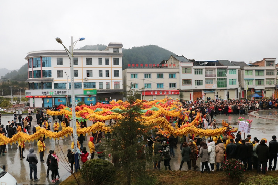 2019年2月16日農(nóng)歷正月十二是瓦寨鎮(zhèn)傳統(tǒng)大型集會(huì)活動(dòng)日,舞龍為主要活動(dòng)之一。午飯后,來自全縣各地的舞龍舞獅隊(duì)、花燈隊(duì)陸續(xù)到瓦寨政府廣場(chǎng)集結(jié),并在廣場(chǎng)右側(cè)有序排隊(duì)等待,各隊(duì)隊(duì)員精神抖擻、神采飛揚(yáng)、迫不及待。前來參觀元宵舞龍的群眾和游客也不斷涌向廣場(chǎng),大街小巷行人猶如潮涌,吆喝聲、歡笑聲、鑼鼓聲連綿不斷……下午五時(shí)許,活動(dòng)在瓦寨鎮(zhèn)政府廣場(chǎng)正式開始,先是由鎮(zhèn)領(lǐng)導(dǎo)對(duì)脫貧攻堅(jiān)各項(xiàng)惠民政策及5年來瓦寨取得的攻堅(jiān)戰(zhàn)績進(jìn)行宣講,宣講慳鏘有力、扣人心弦,特別是5年來瓦寨取得的攻堅(jiān)戰(zhàn)績,一致得到人民群眾好評(píng)和認(rèn)可。隨后,舞龍、舞獅、花燈表演紛紛上演,只見黃龍時(shí)而上下翻騰,時(shí)而昂首擺尾,雄獅時(shí)而就地打滾,時(shí)而賣萌撒嬌,樣子憨態(tài)可掬,花燈表演幽默滑稽,在前行中跑出各種套路,起伏波動(dòng)、生動(dòng)活潑,吸引了所有人的目光,贏得了陣陣喝彩……