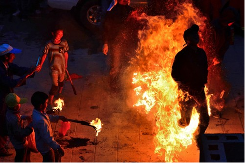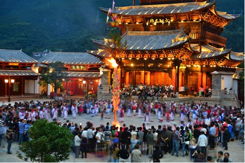 劍川的火把節(jié),還是增進(jìn)親友情誼的一個紅火節(jié)日。到燃燒著的火把樹下玩,烤著火把節(jié)的火,在火光中歡樂談笑,平時見面只打招呼的人喝酒碰杯,說句貼心的話,情誼一下子就升華了。