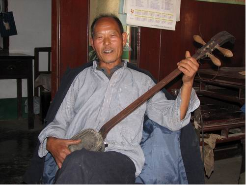 五峰南曲無(wú)專(zhuān)業(yè)藝人,“門(mén)第師”家傳者居多。師徒間手藝南曲兼學(xué),親朋相教亦不少。其演唱形式以坐唱為主,一人自彈自唱,或二人一彈一唱,亦可多人一起彈唱。自制小三弦是其主要伴奏樂(lè)器,也有配以二胡、簡(jiǎn)板的,并不拘于一格。