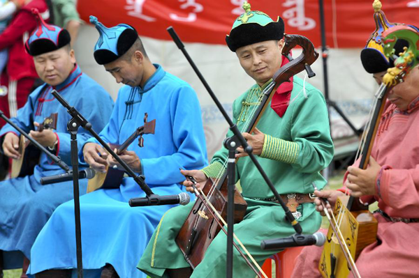 烏蘭牧騎隊(duì)員為牧民演奏《走馬》 2017年5月26日 胡虎虎攝