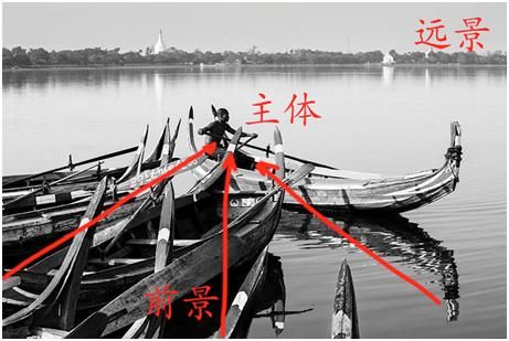 引導(dǎo)線的用處比較廣,在風(fēng)光及環(huán)境人像都在應(yīng)用。這張片子,雖然這個劃船的人是主體,但重點在于船形成的引導(dǎo)線。這個引導(dǎo)線把視線引向了主體的身上,然后看到主體身后比較亮的水面,又看到遠(yuǎn)方的白塔,這些遠(yuǎn)景如果沒有引導(dǎo)線,肯定是先看到最亮的地方,可能是一下就看到遠(yuǎn)方的白塔,這種暗的引導(dǎo)線一般不太引起人的注意。