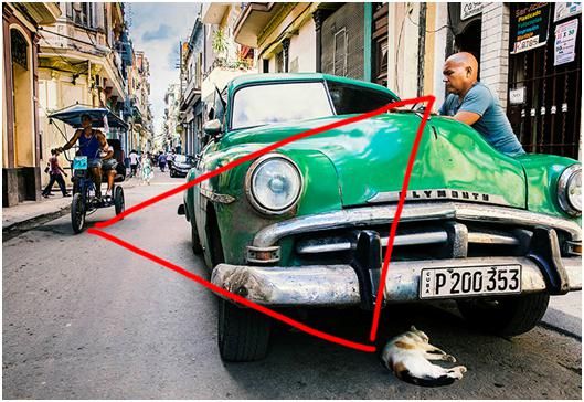 所以,畫面中的三角形關(guān)系安排是否得當(dāng),對于畫面的平衡和協(xié)調(diào)是非常重要。安排得當(dāng),畫面會看起來很舒服,主次關(guān)系、呼應(yīng)關(guān)系也非常清晰。