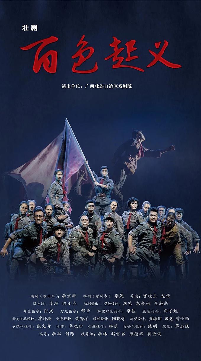壯劇《百色起義》以1929年發(fā)生在廣西的百色起義為素材創(chuàng)作而成,以百色起義的籌備、舉行為主線,分為初到南寧、群雄聚會(huì)、英靈歌唱、百色大地等部分,通過獨(dú)具廣西特色的壯劇方式來表現(xiàn)紅色歷史題材,塑造了鄧小平、李明瑞、韋拔群等眾多百色起義指戰(zhàn)員形象,謳歌了舍生忘死、救國救民的革命先烈和為中國革命付出巨大犧牲的壯鄉(xiāng)人民。