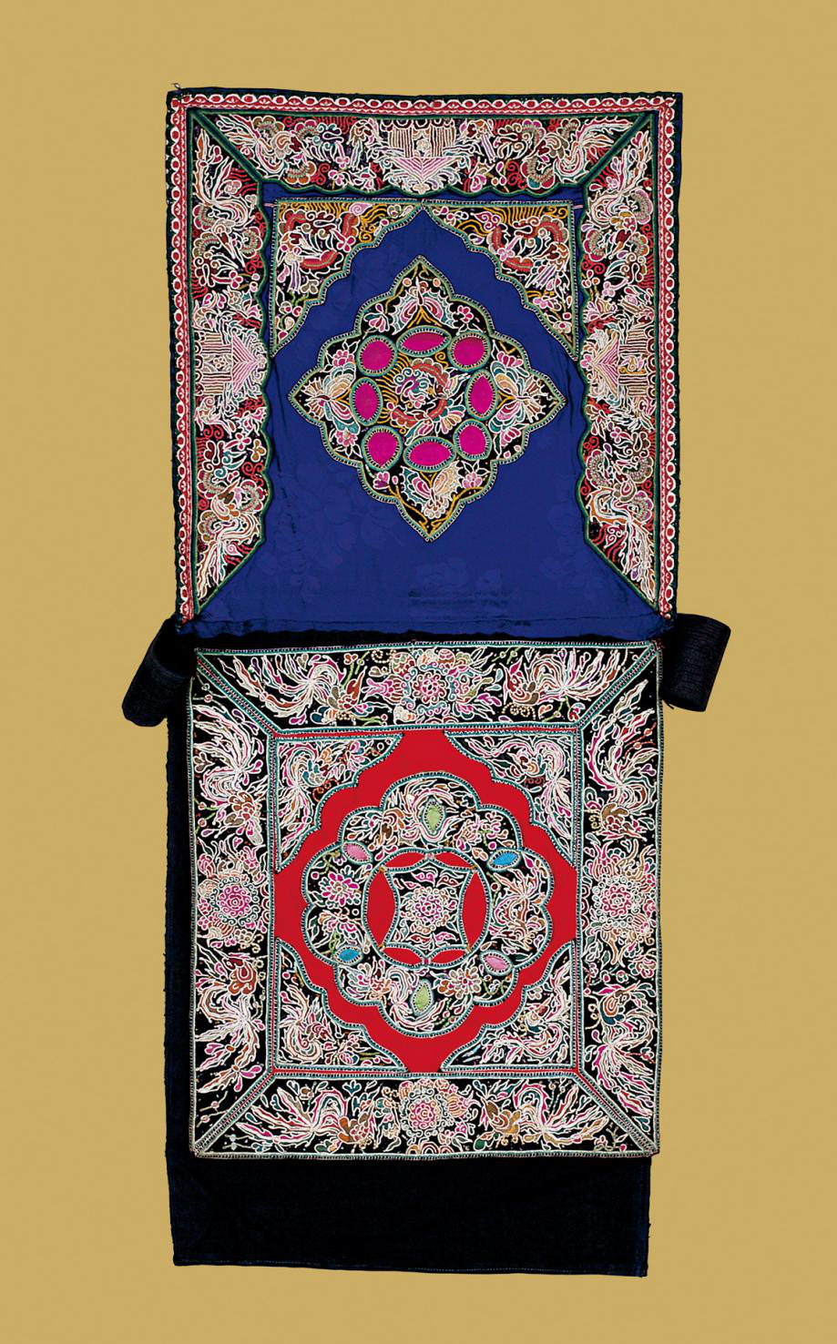 侗繡是侗族婦女最擅長的工藝,它是農(nóng)耕文化的產(chǎn)物。侗族刺繡已被列為少數(shù)民族優(yōu)秀文化遺產(chǎn),并且已經(jīng)逐漸走上產(chǎn)業(yè)化的道路。在侗族服裝中有許許多多的刺繡,它們出現(xiàn)在不同的部位,樣式、顏色也各不相同。除了服裝,刺繡在頭巾、嬰兒背帶、婦女胸兜、布花鞋、鞋墊、煙袋、挎包等也十分普遍。一件刺繡作品的完成,首先要把構(gòu)想或需要的圖案以剪紙的形式呈現(xiàn)出來,其次將剪紙貼在布條上,布條只有綠色、紅色和黃色。刺繡時,左手固定布條,右手自如地上下穿針。刺繡的顏色也基本上以紅色、綠色和藍色為主,十分貼近大自然。繡品不僅具有極高的裝飾價值,其反復繡綴的工藝還能增加衣物的耐用度。在侗繡中最出名的要數(shù)平秋侗繡。其發(fā)源于九寨,集紡織、印染、剪紙、刺繡于一體。這種繡種僅在錦屏縣平秋鎮(zhèn)及周邊的侗族群體中世代相傳。