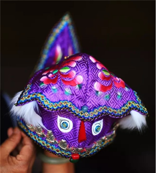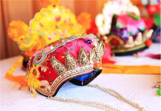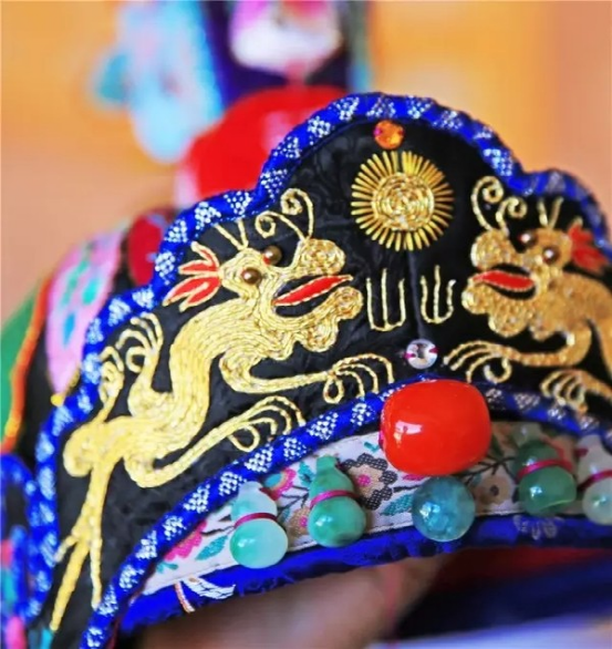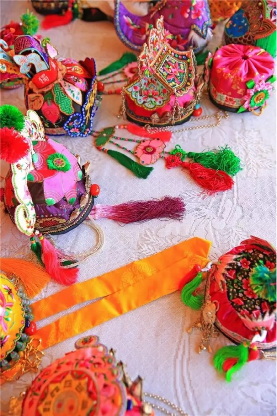 走進(jìn)楊文煥的工作室,猶如進(jìn)入一個(gè)明媚鮮艷的夢(mèng)境。首先映入眼簾的,便是那一頂頂色彩鮮艷、繡工精致的童帽:造型大方、線條流暢的獅子帽;色彩明艷、虎虎生威的老虎帽;精巧別致、活潑可愛(ài)的翹尾帽;高雅富麗、古韻悠長(zhǎng)的公子帽;別具一格、特色鮮明的牌坊帽。