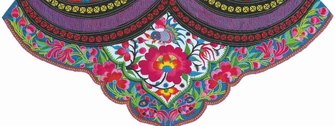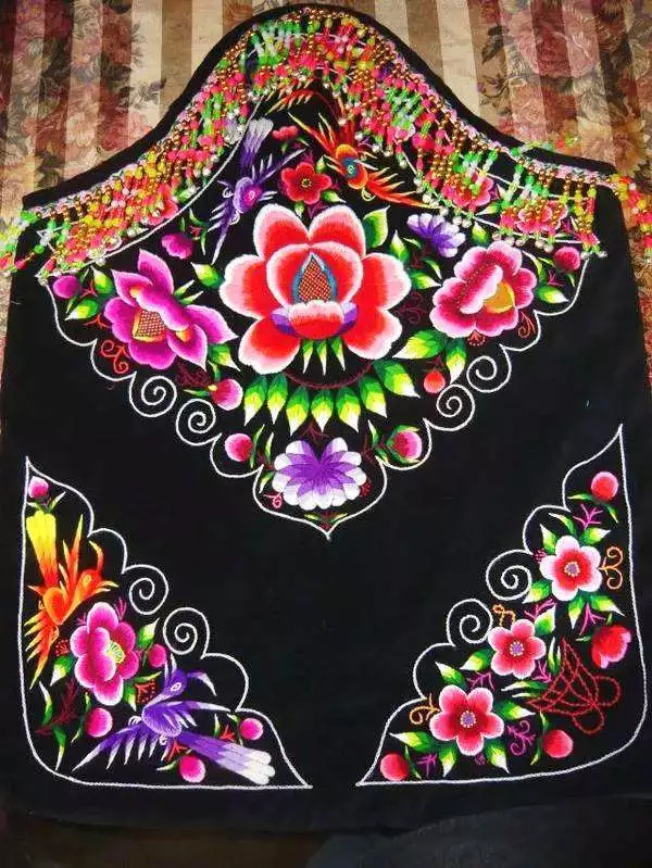 彝族婦女圍腰,是女性審美的結晶,實用美觀。圍腰是最能集中體現(xiàn)彝族女性心靈手巧的女紅作品,因此成為青年男子傳統(tǒng)擇偶的重要標準之一。每條彝族圍腰,須經(jīng)過剪紙、裁剪、刺繡、挑花、配飾等環(huán)節(jié),每一個細微的過程都傾注了彝女的聰明與才智。事實上,彝族婦女圍腰,還蘊含著重要的彝族社會歷史、文化信息。