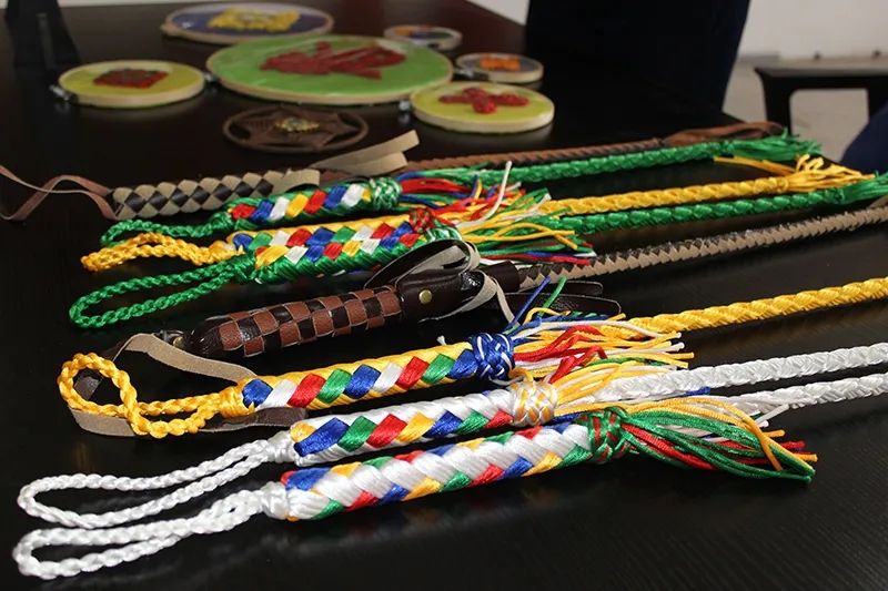 科爾沁繩結(jié)技藝是通遼市科爾沁區(qū)一項傳統(tǒng)民間技藝,它是從中國古老的繩結(jié)技藝發(fā)展而來,逐漸形成了自己的特色和體系,產(chǎn)生了《蒙古馬鞭》、《蒙古捕夢網(wǎng)》等代表作品。作品主要來源于游牧民族生活中的日常實用,比如馬龍?zhí)祝R鞭,固定蒙古包的綁繩,蒙古服的扣子等。2018年《結(jié)繩技藝》確定為盟市級非物質(zhì)文化遺產(chǎn)項目。近年來隨著國家對非物質(zhì)文化遺產(chǎn)的重視和大眾對于“中國結(jié)”的關(guān)注,科爾沁繩編又重新走入人們的視野??茽柷呃K編技藝傳承人經(jīng)過多年的研習(xí)和挖掘,創(chuàng)造了很多經(jīng)典作品,使這門古老的技藝煥發(fā)出新的光彩。