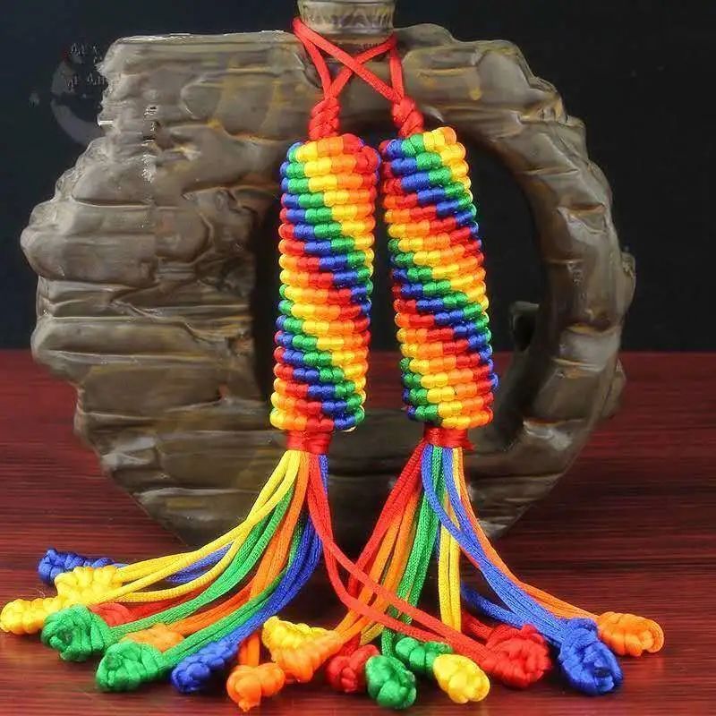 科爾沁繩藝的藝術(shù)特色蘊涵著鮮明的民族特色與濃厚的鄉(xiāng)土氣息,不管是在繩結(jié)的造型特征、色彩和精雕細(xì)琢的工藝上都有別具一格的藝術(shù)特色。