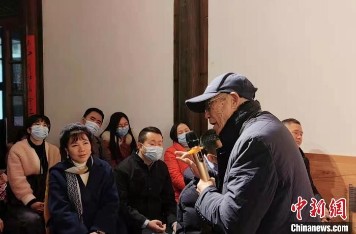 圖為陳茂錦正向現(xiàn)場觀眾介紹閩箏。 葉秋云 攝