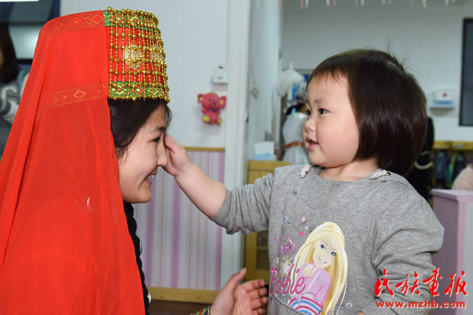 自2014年首場“民族風吹進幼兒園,愛心曲唱暖身邊人”公益活動獲得積極反響后,幼兒園黨支部、工會、團支部牽手園區(qū)民族團結共建單位,走出校園、貼近社區(qū),以愛心義賣、義拍、定向捐助等方式為園區(qū)少數(shù)民族困難家庭送去關懷。在近幾年的園區(qū)民族工作實踐中,天恒名都幼兒園的“家、校、社、企”聯(lián)動模式不斷發(fā)展創(chuàng)新,培育孵化出少數(shù)民族(幼教)實習點、少數(shù)民族志愿者服務隊等形式的實習模式。2013年至今,幼兒園已為上海市群益職業(yè)技術學校的“新疆班”學生210人次提供了實習崗位。