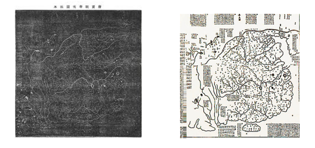 唐代地理學(xué)家賈耽采用裴秀制圖法組織畫工繪制《海內(nèi)華夷圖》,幅面約十平方丈,古今對照,雙色繪畫,注重少數(shù)民族部分,是巨幅唐代中國全圖?!哆M(jìn)海內(nèi)華夷圖及古今郡國縣道四夷述表》云:“唐臣聞地以博厚載物,萬國棋布;海以委輸環(huán)外,百蠻繡錯(cuò)。中夏則五服九州,殊俗則七戎六狄,普天之下,莫非王臣?!?宋代《華夷圖》被簡化成縱橫各約80厘米,刻于《禹跡圖》背面;圖上不畫方格,有山脈、河流、長城和各州的名稱,其位置大體與實(shí)際相近。山脈用人字形表示,河流為單曲線;河流名稱注記在河源處,囊括眾多異族名稱。西安碑林博物館這塊作為印刷用的兩面刻有地圖的石版,是中國現(xiàn)存最早的石版地圖。唐代巨幅彩繪《海內(nèi)華夷圖》和宋代石刻《華夷圖》不僅標(biāo)志著中世紀(jì)中國制圖學(xué)上最高成就,而且是中國多民族國家的象征。