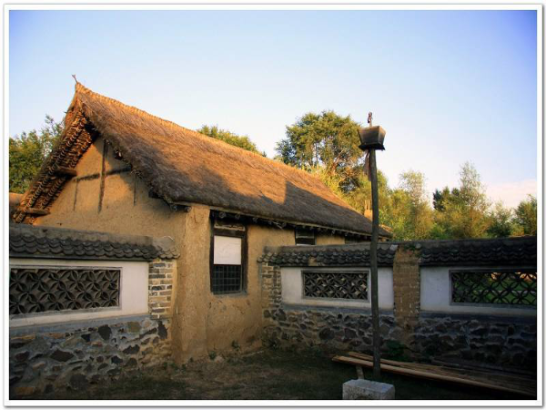 傳統(tǒng)的滿族民居的屋頂一般采用草屋頂或瓦屋頂。屋頂蓋草俗稱“苫房”,在北方農(nóng)村,這是一種很高超的手藝。通常要在木結(jié)構(gòu)的構(gòu)架頂部,先鋪上用秫秸桿(高粱桿)或者樹條子編扎的“房芭”,再抹泥填補縫隙。在其上面,將草的根部朝下,層層覆蓋,為防止滑落和被風吹散,還需要用草繩依次交叉加固。草房頂鋪設(shè)齊整,久經(jīng)風雨,草就變成了黑褐色,因此也叫“海青房”。