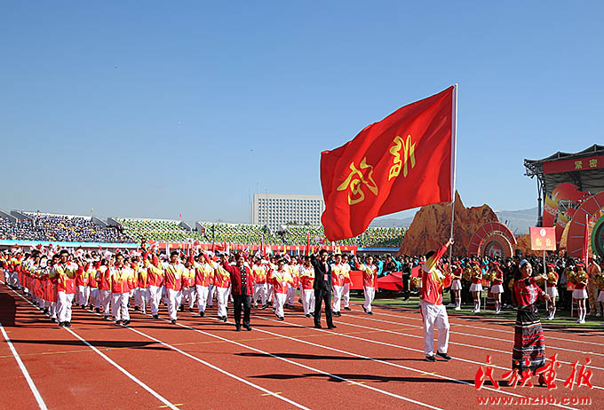 云南省少數(shù)民族運(yùn)動(dòng)會(huì)國(guó)旗、會(huì)旗方陣入場(chǎng)