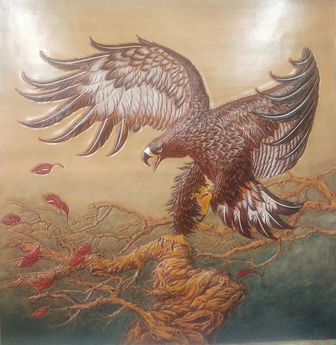 包頭市東河區(qū)皮雕畫非遺項(xiàng)目傳承人張衛(wèi)祥,2012年畢業(yè)于中央美術(shù)學(xué)院,受老師影響,畢業(yè)后一直致力于把皮雕與古代山水畫結(jié)合,使皮雕畫展現(xiàn)出古樸典雅的風(fēng)格,許多皮雕作品屢屢獲獎。
