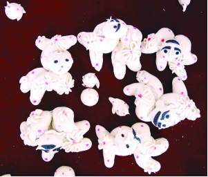 1、春節(jié)(過大年)來臨前,家庭婦女用白面捏制小狗、小貓、玉兔、魚娃娃、蓮花的面塑制品,上面點綴紅棗、花生等。以象征萬事如意,多福多壽、家庭和睦。