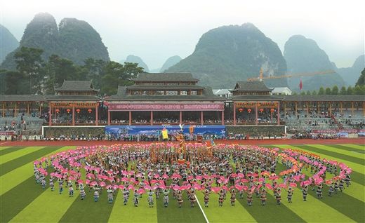 記得住苗寨的鄉(xiāng)愁。位于融水縣城西北部的田頭苗寨,自然景觀秀麗,民族風(fēng)情濃郁,是國(guó)家3A級(jí)景區(qū)?!皫啄昵拔襾磉^這里,這次故地重游,發(fā)現(xiàn)苗寨變得更美了,也更好玩了!”貴州游客張女士說。登上吊腳木樓,邁上風(fēng)雨橋,觀看小橋流水、層疊梯田、千年古榕,參與“蘆笙踩堂”“牙變嬉春”“斗馬”“打同年”“火把節(jié)”等獨(dú)具特色的民俗活動(dòng),品味古寨百家盛宴,已成為很多游客尋找鄉(xiāng)愁的途徑,融水“苗寨鄉(xiāng)愁”名片越擦越亮。
