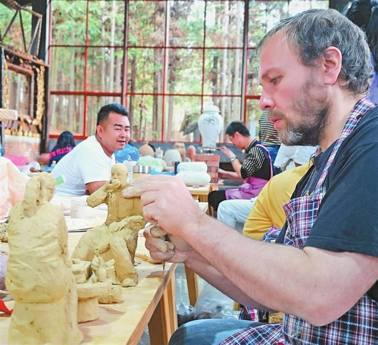 “孟定”一詞的傣語意思是“會彈琴的壩子”,各種元素的集聚,不僅孕育了這里富饒的水土,也衍生出了獨有的文化氛圍?!拔覀兡茏龅木褪前堰@里獨有的民族文化傳播出去,通過紙筆記錄、見證和發(fā)掘傳統(tǒng)的民風民俗,讓璀璨的民族文化煥發(fā)光彩?!泵隙贤‘嬙贺撠熑撕涡聡榻B說,在此建設畫院,除了方便自己和學生繪畫寫生外,更多的是想讓外地游客了解體驗諸如芒團造紙等民族工藝文化內(nèi)涵。立足于此,畫院在建設中不斷推動民族文化的挖掘與開發(fā)。目前畫院竹筐、竹簍、手工白綿紙燈等文創(chuàng)產(chǎn)品備受市場歡迎,不僅促進了傣族文化的傳承和發(fā)揚,也帶動了當?shù)剜l(xiāng)村旅游產(chǎn)業(yè)的發(fā)展。