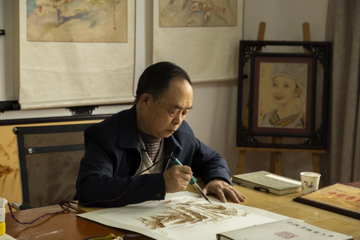 雖然陳國梁在宣紙烙畫上有極大的成就,但作為宣紙烙畫傳承人的他深知烙畫這門藝術(shù)今天面臨的處境。這么多年來他也一直致力于傳播宣紙烙畫和教授徒弟。2016年烙畫非遺傳承進入了貴州民族大學(xué),并創(chuàng)建成了烙畫非遺傳承工作室。陳國梁最大的愿望是通過自己的努力讓更多學(xué)生能學(xué)習(xí)到烙畫這門藝術(shù),期望這項有兩千多年歷史的烙畫藝術(shù)能再次發(fā)揚光大,期望宣紙烙畫能不斷的創(chuàng)新和傳承下去。