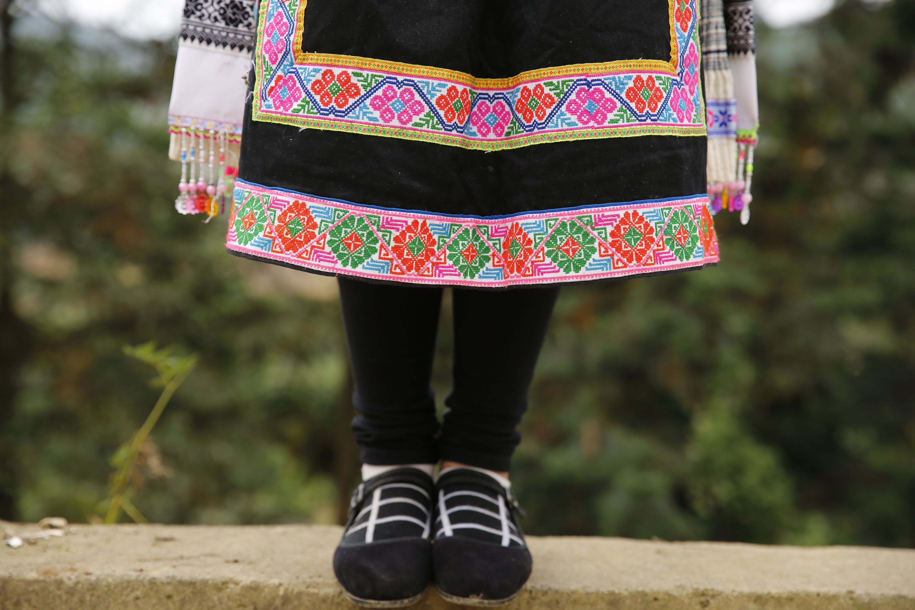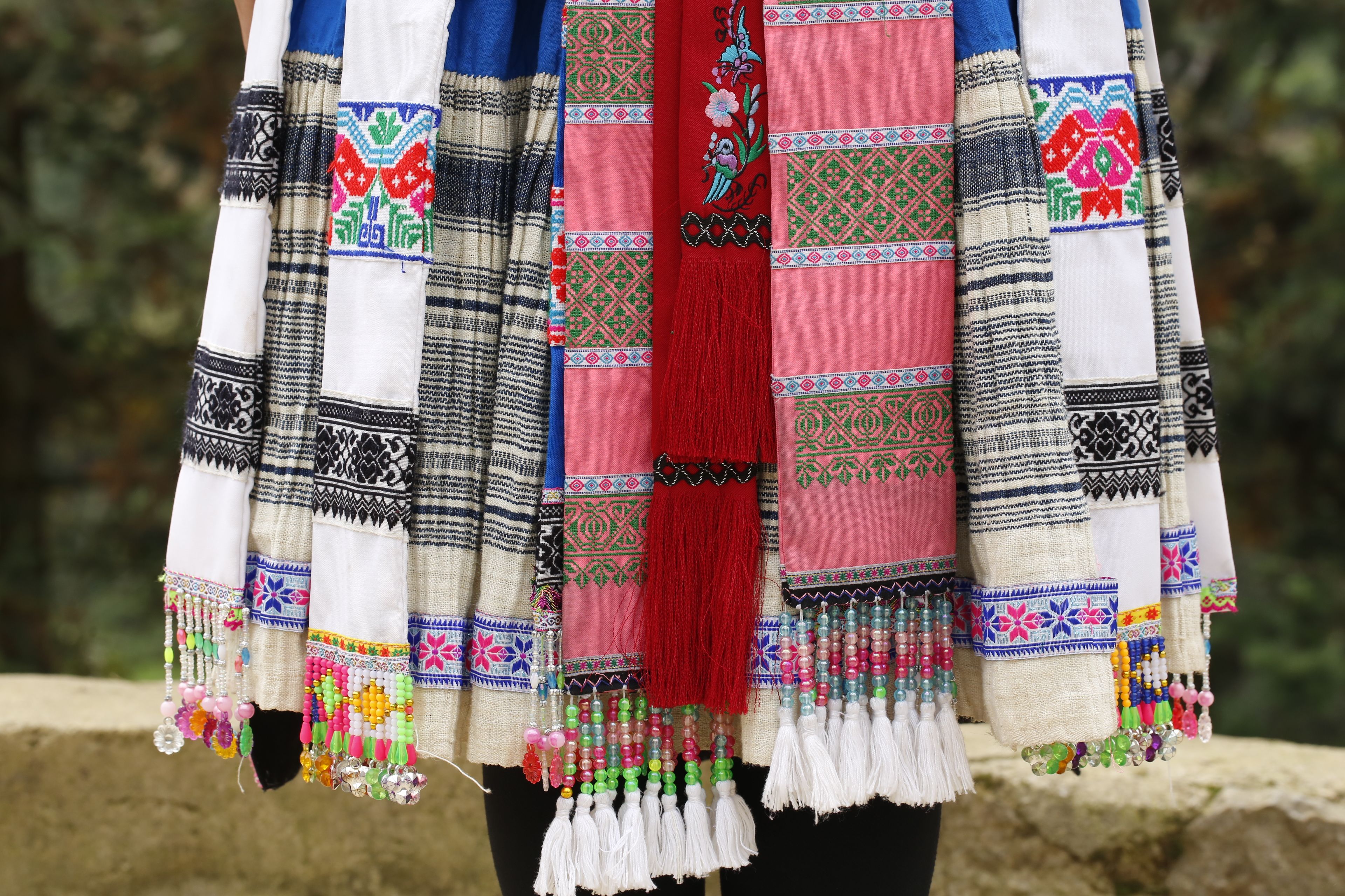 苗族女子服飾花帶百褶裙-裙擺側面繡花